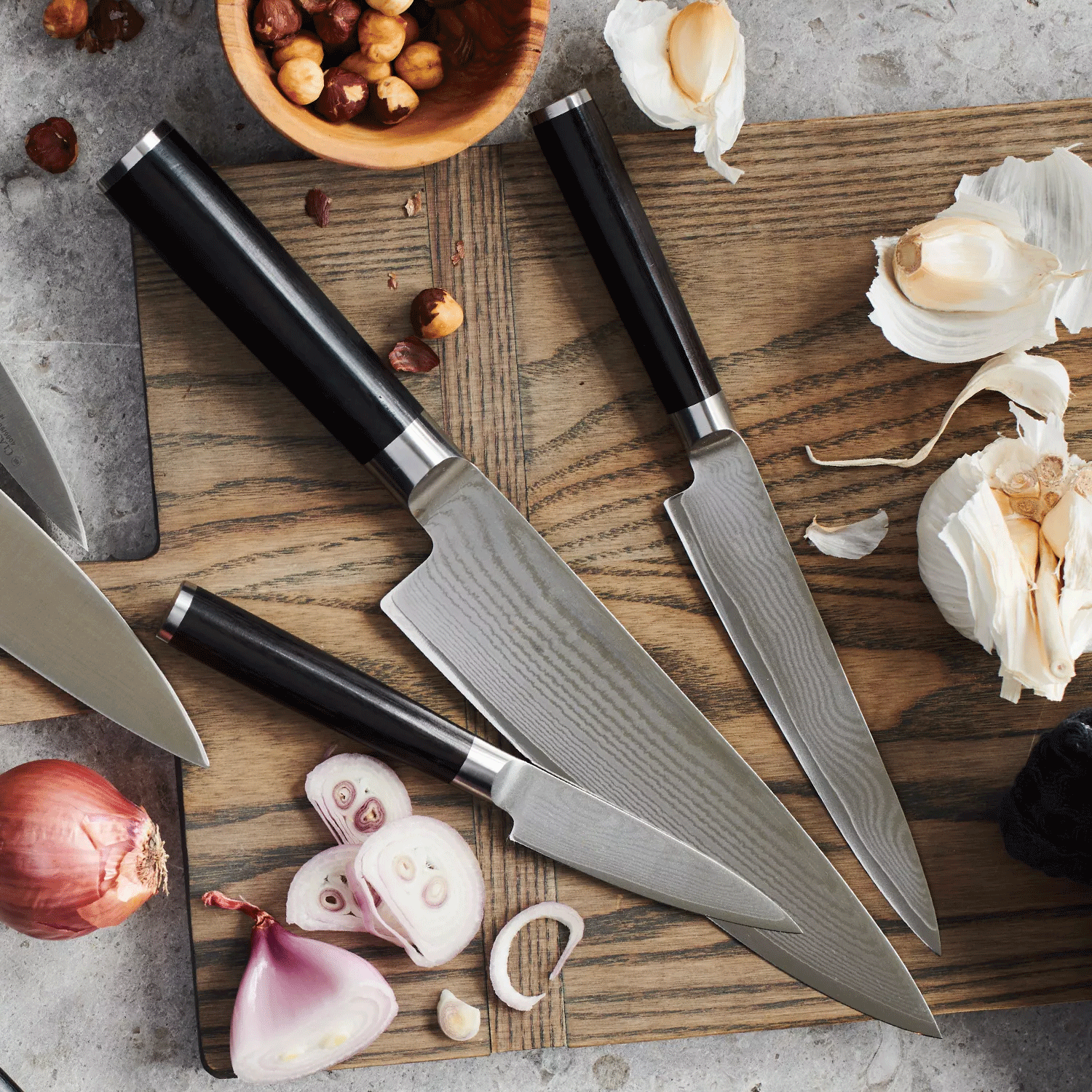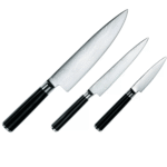 - Includes: 3½” paring knife, 6″ utility knife, 8″ chef’s knife, and presentation/storage box